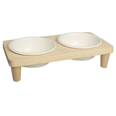 白橡木方形高腳雙碗 - 大陶瓷碗
