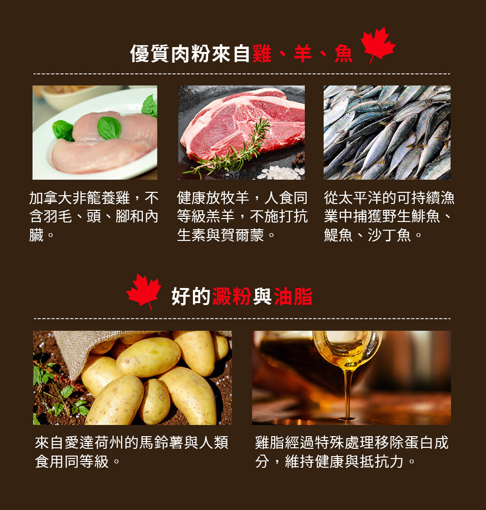 優質低敏配方 單一肉類蛋白、單一碳水化合物 78% 蛋白質來自羊肉粉 22% 蛋白質來自蔬菜