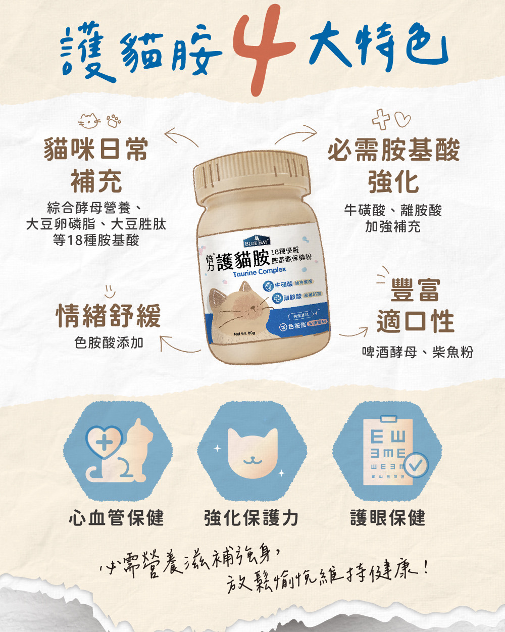 BLUEBLY新護貓胺80克 (貓用離胺酸、牛磺酸、色胺酸幫助情緒穩定、心血管保健、維護視力健康)